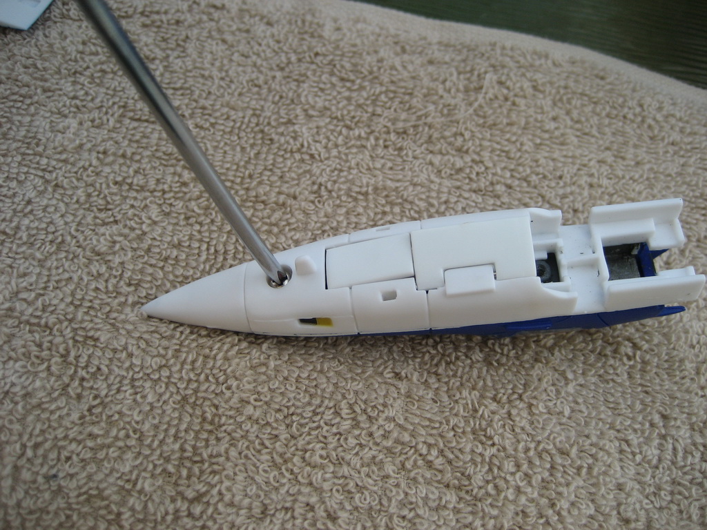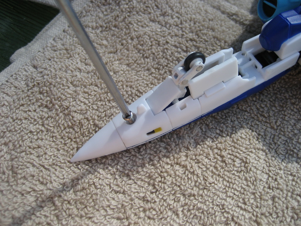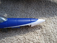 Dans ce petit tutoriel, j'explique la manière de corriger un GROS défaut constaté surtout sur les modèles bleus, les AFC-01H au 1/48 de chez aoshima. Comme on le voit sur la photo, l'arrière du cockpit est particulièrement "ouvert" et même si en position "fighter", ça ne pose pas trop de problème, dès qu'on décroche l'avant de l'alpha pour le transformer, celui çi peut carrément vous rester dans les mains ou se détacher très facilement. Il s'agit essentiellement d'un mauvais assemblage. ATTENTION: Les manipulations décrites dans ce tutoriel sont pour les bricoleurs avertits. Mal exécutées, elles peuvent endommager votre jouet et vous blesser, faites très attention !