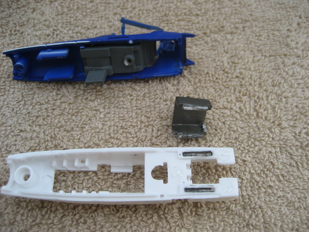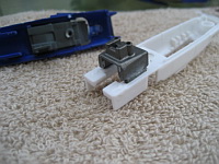 - La première partie consiste à nettoyer les rainures destinées à recevoir le bloc gris, il y a des restes de colles et vu la petite taille des rainures, je vous suggère de vous équiper d'une petite fraise bas de gamme que l'on trouve dans tous les magasins de bricolages pour environ 20 euros... Nettoyez les rainures et le bloc gris, voir même à lui raboter les "pieds" si nécessaire (ou si vous n'avez pas les bons outils) de façon à ce que la pièce soit plaquée comme sur la 2ème photo.