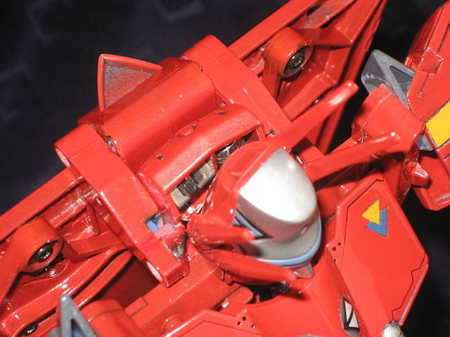 C'est mon premier "custom", j'ai souhaité avoir cette version depuis la première fois ou je l'ai vu dans la Série Macross 7. Il m'a fallu 3 ans pour me décider... (toujours quelque chose à faire...) mais je me suis lancé avec l'arrivé des beaux jours en 2007. Entre temps, comme beaucoup le savent, ce custom a déjà été fait par un américain et on peut le voir dans la section custom du site www.macrossworld.com. Cependant, même si c'est plutôt bien peint, ca ne correspondait pas assez à ce que j'avais en tête et malgré le peu d'expérience que j'ai dans ce domaine, je me suis lancé. Le choix de la couleur et de son coté brillant peut ne pas plaire à tout le monde mais c'est volontaire, Milia est un personnage fiere et prétentieuse (c'est pour ça qu'on l'aime), elle aime qu'on la regarde, c'est pour ça qu'elle fait peindre ses valkyries en rouge donc j'ai choisi en fonction du personnage.