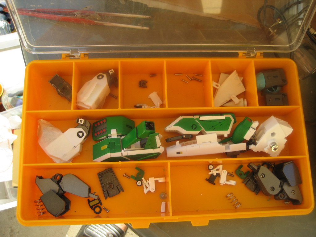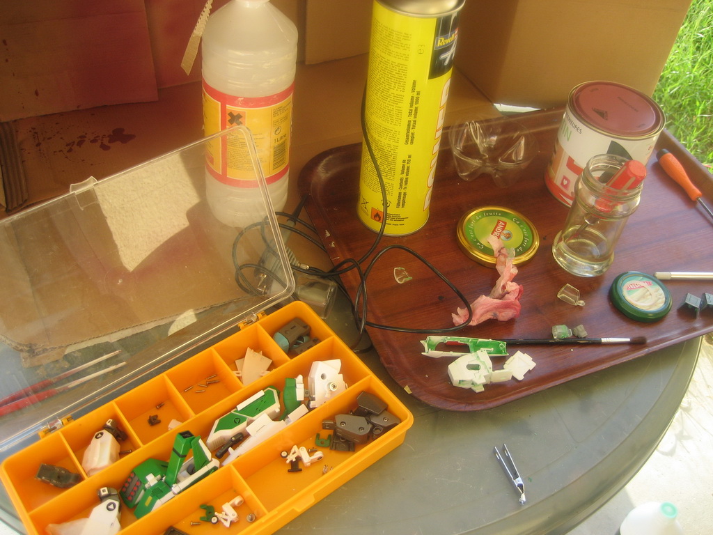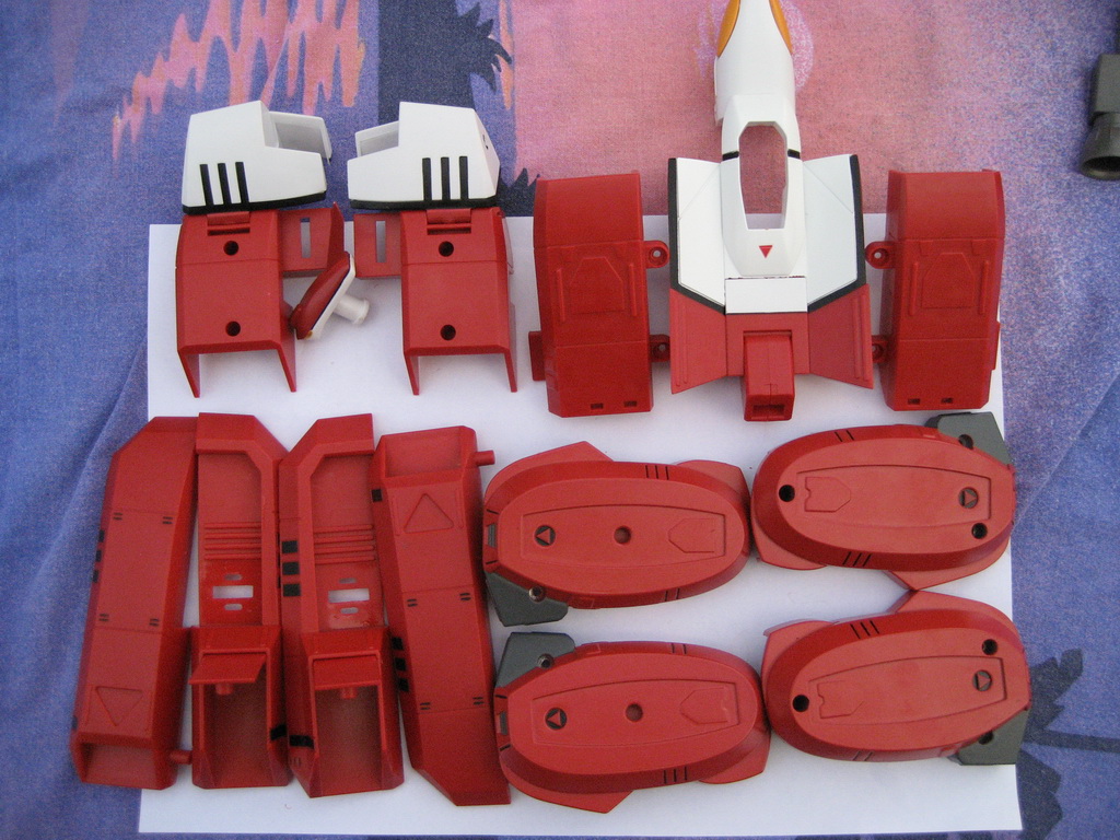 - Il me tardait vraiment de le faire, j'ai attendu d'avoir une bonne occasion pour trouver un Tread de chez Aoshima à un prix raisonnable car avec la hausse du yen, il valait bien plus qu'un MPC de chez Toynami. Pourquoi ne pas avoir prix un MPC de Toynami ? Par principe, je n'aime pas "toucher" une pièce de collection numérotée (c'est le cas des MPC) et d'autre part, seule la version Aoshima a le corps de couleur blanche alors que les MPC sont à moitié gris. Mais revenons à l'essentiel, le démontage: Très facile dans l'ensemble, l'exception de la tête, cette dernière étant dotée d'un long pic à l'arrière, il a été difficile de trouver la façon de la sortir sans dégâts.