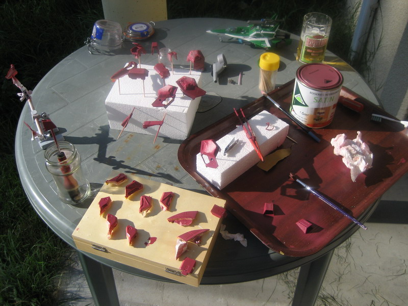 Ca peut surprendre mais la couleur étant très particulière, je n'ai pas voulu me risquer à la créer par un mélange, je savais que j'en aurai besoin plusieurs fois et plus tard pour d'éventuelles retouches, et comme cette couleur est introuvable en peinture maquette, je suis allé là où il y a de grands choix de teintes; dans un magasin de bricolage...